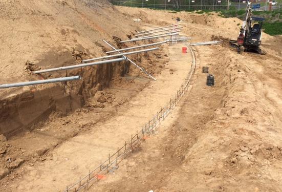 Products Installed: (15) Supportworks® Model 288 Helical Tiebacks, 8"-10"-12" Lead Section, Installed Lengths of 28 to 35 feet, Design Working Tension Load of 20.7 kips