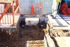 Helical piles were considered the ideal deep foundation option given the soil conditions, required capacities, anticipated pile production rate, and the smaller installation equipment that could be used to access and maneuver within the tight working space. The helical pile design consisted of the Model 288 (2.875-inch OD by 0.276-inch wall) hollow round shaft with 8”-10” double-helix lead sections to support the design working compression load of 15 kips. Twelve piles were installed to depths of about 14 to 17 feet to exceed the target installation torque of 3,400 ft-lb. The torquecorrelated ultimate capacities then exceeded the design working load by factors greater than 2.0 (FOS ˃ 2). The piles were either advanced to depth to set the top of pile elevation, or the completed piles were cut off at the design elevation. New construction brackets were set on the tops of the piles to be cast into concrete. The 12 helical piles were installed within one day.