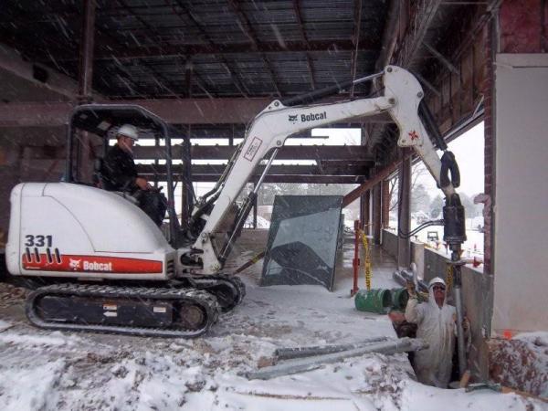 Foundation recommendations in the geotechnical report included drilled concrete piers with helical piles as an alternative foundation type. Helical piles were ultimately selected as the more economical solution due to the high groundwater table and the anticipated need for casing of the drilled concrete piers. Three new construction helical piles and five retrofit helical piles were proposed to support design working loads ranging from 15 to 25 kips. The five retrofit piles would support new loads on the existing grade beam and drilled pier foundation system. The uppermost helix plate along the pile shaft was specified at a depth of at least 20 feet. The new construction and retrofit helical piles consisted of the Model 288 (2.875" OD by 0.276" wall) hollow round shaft with 10”-12” double-helix lead sections. The piles were installed to depths of 25 feet and to torque values correlating to ultimate pile capacities of at least twice the design working loads (FOS ≥ 2). The retrofit bracket assemblies included external sleeves around the pile shaft to resist the bending forces generated by the side-load condition. The eight helical piles were installed in one day despite snowy conditions, low temperatures (12° F) and dealing with groundwater within excavations.
