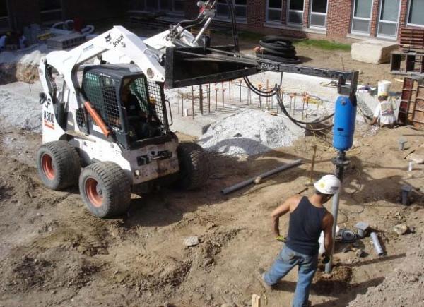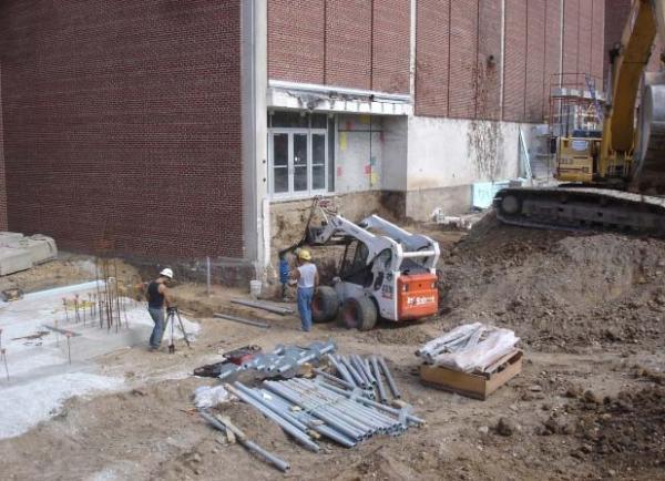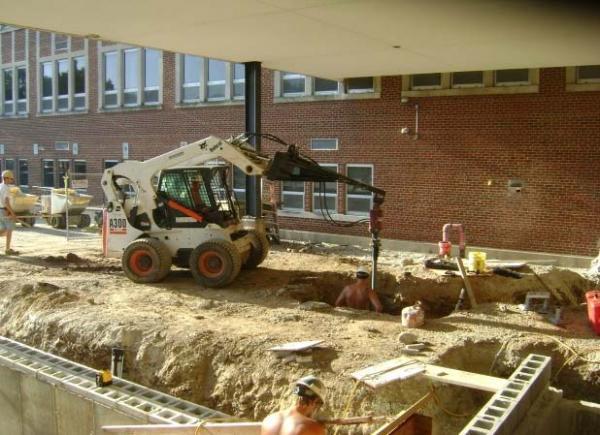 September 2010 -The Whitefish Bay High School was originally constructed in 1930. Since then it has received additions in 1941, 1967 and 1991. In 2010 it was to undergo two more additions to the field house and auditorium. The field house would be receiving a new enclosed corridor to prevent students from having to walk outside during the winter months. The auditorium was in receive new orchestra, vocal and band rooms. The field house addition was located under an existing finished second floor limiting the size of construction equipment. The auditorium addition would be constructed along the south wall in an open terrace and consisted mainly of grade beams. Since there had been so many additions the "as built" information was rather limited. It was determined that the new additions would need to be supported on deep foundations to prevent future settlement of the existing structure. Helical piles became the deep foundation of choice due to the low clearance for the field house and since multiple mobilizations would be necessary to complete the project.