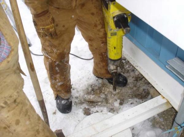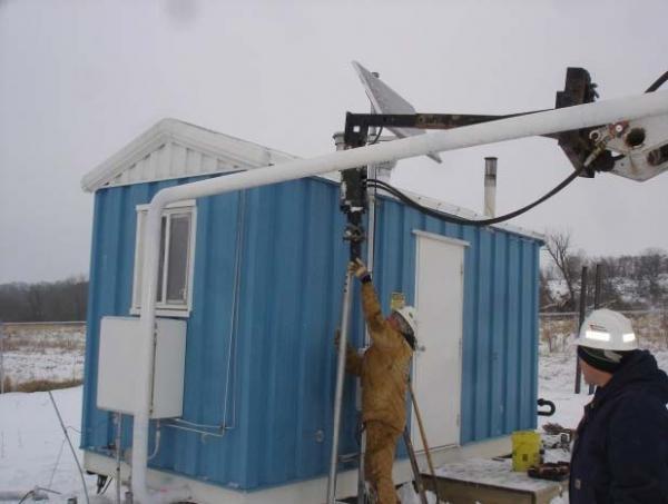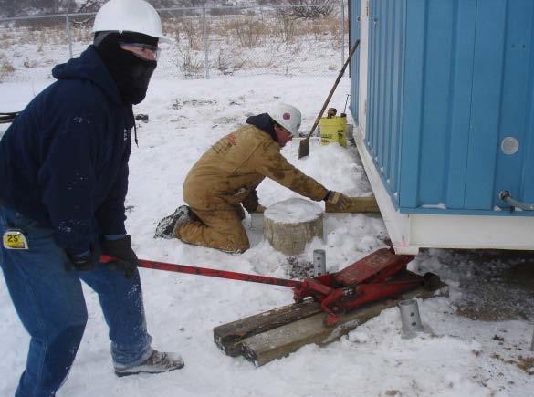 March 2011- Northern Natural Gas (NNG), headquartered in Omaha, NE, contacted Foundation Supportworks of WI (FSW) to stabilize a settled heater building at their substation near Argyle, WI. The substation is located on a property adjacent to low-lying wetlands. The lightly-loaded structure was originally supported on two horizontal “I” beams spanning the building’s width and set on top of 16-inch diameter concrete pilings. Over the course of several years, two of the pilings on one end of the building settled ten inches. NNG was concerned that the settlementinduced stresses in the high pressure gas pipe lines could lead to failures in the lines or the connections. NNG further requested that the building be lowered and leveled as close to the ground as possible to allow for easier entrance and exit.
