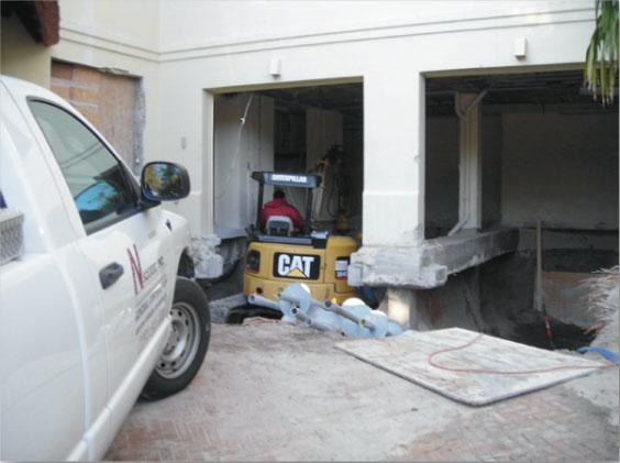 January 2011- An existing single family residence underwent a renovation project to the main and second floors of the structure. The home, located on the Gulf of Mexico, was originally constructed on driven concrete pilings. The renovation project would introduce additional loads to the concrete piles and also require installation of new piles for structural slab support. However, the limited access on the inside and outside of the structure would prevent the use of driven concrete piles. In addition, since the structure is located within a FEMA flood zone, the tops of new construction piles needed to be approximately 8 feet below existing grade due to scour depth requirements. Retrofit piles could be located at the elevations of the existing grade beams.
