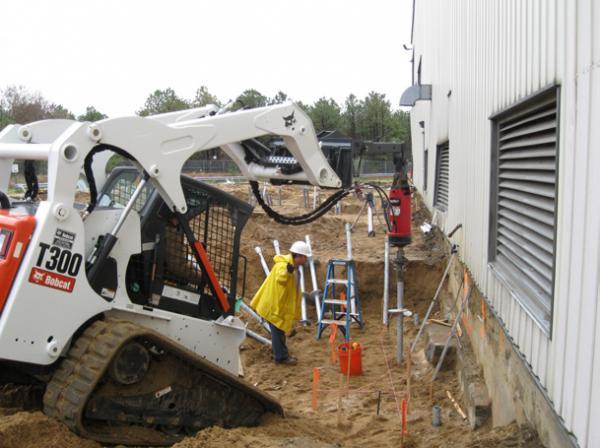 November 2010- The Brookhaven Recycling Facility in Yaphank, New York planned an expansion project to increase the size of the existing facility by 12,000 square feet. The 200-foot by 60-foot addition would be a prefabricated metal building supported on cast-in-place concrete footings and foundation walls. The metal building and the foundations would be designed to resist compression loads as well as tension/uplift loads due to wind. For such metal building designs, it is often most economical to simply oversize the footings to increase the dead load of the structure and offset the uplift force. However, deep foundations may also be considered to reduce the dimensions of the footings (pile caps). A geotechnical investigation at the property included nine soil borings completed to depths of 16 to 22 feet below grade. The general subsurface profile within the area of the addition consisted of approximately five feet of fill soils, loose sand, silt and gravel, underlain by medium dense sand and gravel. The existing fill was determined as unsuitable to support the foundations. One option then included complete removal of the existing fill soils and replacement with compacted and tested fill. Another option included deep foundations, thereby leaving the existing soil in place.