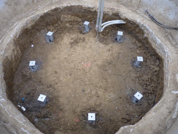 Products Installed: (8) Foundation Supportworks™ Model 350 Helical Piles, 10”-12”-14” Lead Section, Installed to Depths of 57 to 60 feet, Design Working Loads of 30 kips Compression and 10 kips Tension