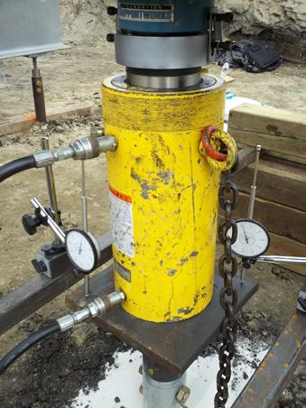 Designs for the foundations and structural slabs included a total of 80 Model 288 (2.875- inch OD by 0.276-inch wall) and Model 349 (3.5-inch OD by 0.300-inch wall) hollow round shaft helical piles. With design working loads ranging from 10 kips to 45 kips, helix plate configurations varied from double 8”-10” lead sections to triple 10”-12”-14” leads followed by a single 14” plate on the first extension. Model 288 helical piles were utilized to support design working loads up to 35 kips and the Model 349 helical piles were utilized to support the design working loads of 40 and 45 kips. Two pile load tests were completed, one in each area of the two major additions. In each area, the HP349 shaft with the quad-helix plate configuration was tested. Net deflections, total head movement minus elastic compression, of the test piles were 0.06-inch and 0.38-inch at the design working load of 45 kips. These measured deflections were less than the specified maximum net deflection of 0.5-inch. The test piles and the production piles were advanced to depths of 18 to 29 feet below the proposed finish floor elevations to bear within the medium dense sand and gravel or the very stiff to hard glacial till. The helical piles were installed to torque-correlated ultimate capacities of at least twice the design working loads (FOS ≥ 2). Load testing and production pile installation were completed in two phases, but were finished within a total of only eight days.