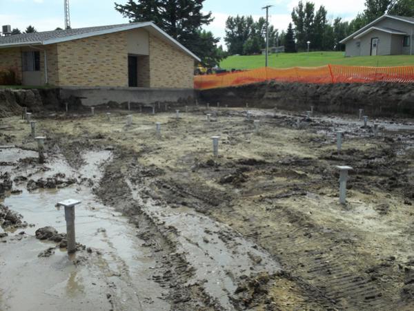 August 2011 Maryhill Manor is a long-term care facility that provides 24-hour nursing and personal care services. The project included two major building additions to the north and east of the existing single-story, slab-on-grade structure. The geotechnical exploration included nine test borings completed to depths up to 51 feet. The soils within the upper approximate 14 feet of the profile were described as sandy and clayey fill, very loose to loose sand, soft to medium stiff clay and topsoil/swamp organic deposits. Medium dense sand and gravel was encountered between about 14 feet and 21 feet over very stiff to hard sandy lean clay (glacial till) to the bottoms of the test borings. Groundwater was observed at depths ranging from six to eight feet. Support of the additions on shallow spread footings was considered, but then dismissed due to the presence of the highly variable, undocumented fill soils and the weak native soils. In order to minimize anticipated structural settlements, the foundations and floor slabs of the additions were planned with support on deep piles penetrating these upper soils.