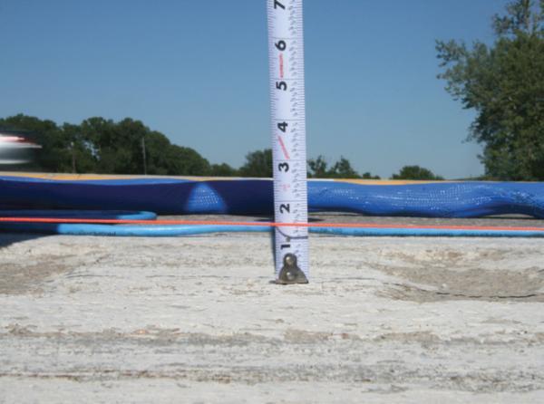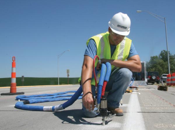 The NDOR selected PolyLEVEL™ polyurethane injection to fill the voids and lift Highway 6 back toward its original position. PolyLEVEL™ is a two-part urethane that expands into a rigid foam used to fill voids, stabilize slabs and lift concrete. Once injected through small 5/8-inch drilled “ports” in a slab or surface, a chemical reaction converts the liquid urethane components to a strong, rapidly-setting foam material. In its foam state, PolyLEVEL™ is relatively light, weighing two to six pounds per cubic-foot (pcf). Other void-filling or lifting materials can weigh upwards of 120 pcf, adding significant weight to supporting soils or base materials and potentially contributing to further settlement issues. With a compressive strength of 100 pounds per square inch (psi), PolyLEVEL™ can provide the necessary resistance to support heavy loads. The two northbound lanes affected by the settlement were each repaired independently of the other to allow continued traffic flow. Due to the quick-set nature of PolyLEVEL™, the first restored lane of highway was reopened to traffic a mere 20 minutes after injection. This allowed crews to quickly close and begin work on the adjacent northbound lane. A total of 2,358 pounds of PolyLEVEL 400 were injected through 90 injection ports laid out in an approximate 5-foot grid. The expanding PolyLEVEL™ foam filled the voids and lifted the sag in the highway 1.5 inches. The entire project was completed in seven hours.