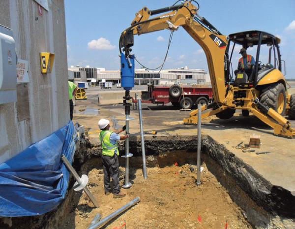The Washington National Airport was opened in 1941 and renamed as the Ronald Reagan Washington National Airport in 1998. Renovations to Terminal A included a new jet bridge at Gate 8, a gate utilized by JetBlue Airways. The jet bridge would include a main column next to the terminal building and wheel-mounted column supports toward the end of the bridge. The jet bridge would have the ability to extend and swing radially from the main column, creating relatively high overturning moments on the proposed spread footing. A soil boring completed at the location of the proposed column encountered approximately ten feet of old fill over a layer of native organic soils over lowland terrace deposits consisting of gravel, sand, silt and clay. The shallow fill soils and underlying organics were determined not to be acceptable for direct support of the concrete foundation. With the age of the airport, there was also concern that contaminated soils could be encountered. Any deep foundation option considered for the project had to be installed with minimal vibrations and with smaller equipment to prevent disruption to airport operations. The adjacent gates along Terminal A would remain in service during the jet bridge construction.
