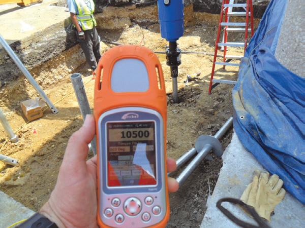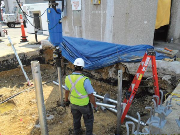 Products Installed: (8) FSI Model 350 Helical Piles, Triple 10”-12”-14” Lead Section with Single 14” Extension, Installed to an Average Depth of 33 feet, Design Working Loads of 55 kips (Compression) and 46 kips (Tension).