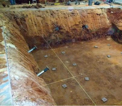 Products Installed: (6) FSI Model 288 Retrofit Helical Piers, 8”-10” Lead; (32) FSI Model 288 Helical Piles, 10”-12” Lead; (8) FSI Model 150 and (8) FSI Model 287 Helical Tiebacks, 12” Lead