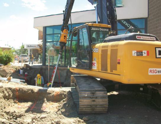 A slab-on-grade, steel-framed addition was proposed for the Moss Performing Arts Center at Colorado Mesa University. Previous subsurface explorations completed near the project site identified soft sandy clay soils extending approximately 50 feet below grade. A high water table was also anticipated. A deep foundation system including helical piles was therefore considered to penetrate the saturated, soft sandy clays for bearing within deep competent soils. Design working loads of 60 kips and 30 kips in compression and tension, respectively, were specified for each helical pile. The proposed addition was located between the existing Performing Arts Center and a busy roadway. With the limited working space, material had to be staged off site. Additional safety and traffic control measures were also required. The construction schedule allowed only seven days for mobilization and helical pile installation.