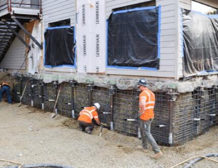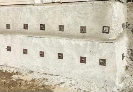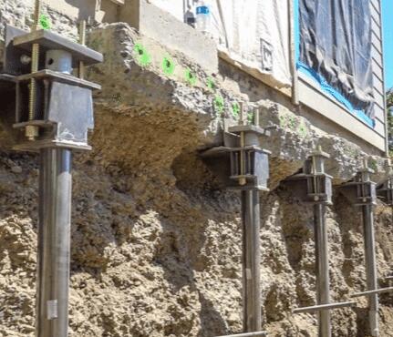 Products Installed: (11) Supportworks® Model 288 Helical Piers, 10"-12" Plate Configuration, Design Working Load of 23.2 kips, Installed Depths of 40 to 50 feet; (22) Grouted Tiebacks, Design Working Load of 6 kips, Installed Length of 15 feet