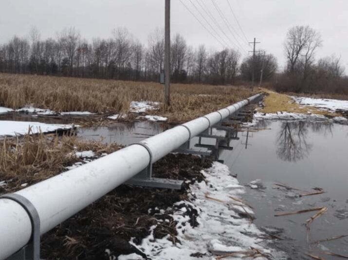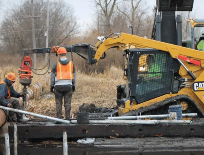 An above-grade, 16-inch diameter, steel pipeline, used for treated water transport, was severely corroded along an approximate 910-foot long section. A new pipeline of similar diameter was, therefore, planned to replace the old, corroded pipeline. The construction of the new pipeline was complicated by the presence of a wetland/marsh with as much as 4 feet of standing water in one area. The construction would also have to be completed adjacent to the existing pipeline and overhead utility lines, which would limit equipment access. Three soil borings were completed along the project length, which identified soft clay with organics in the upper 5 to 7 feet, loose sand below the clay extending to a depth of about 12 feet, and then medium dense sand to the termination depths of the borings at 56 to 62 feet. A deep foundation system was required for the pipeline supports due to the poor bearing soils across the wetland. However, smaller installation equipment was preferred to minimize disturbance to the wetland and for access adjacent to the existing pipeline and overhead utilities.