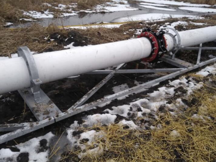Helical piles appeared to be an ideal deep foundation for the project. The design called for 90 foundation support locations with two helical piles per support. Five expansion joints were planned along the 910-foot length that required 20 custom steel support platforms. The remaining 70 supports were a more typical steel cradle design. The compression and tension (uplift) working loads on each helical pile were 1 kip or less, which could easily be supported in the medium dense sands. However, the pile heads would also see moment and lateral loading, which would control the pile design due to the poor surficial soil conditions and the lack of lateral restraint at the support locations. Based on a lateral load and buckling analysis, the Model 288 (2.875-inch O.D by 0.276-inch wall thickness) hollow round shaft with a minimum embedment depth of 15 feet was specified. The piles would have an 8”-10”-12” helical plate configuration. Prior to construction, dewatering operations were employed to reduce the amount of standing water. Even so, the helical pile installation equipment was supported by 1-foot thick, floating timber matting to both protect the wetland and provide a stable working platform. The helical piles were bolted to the steel pipe supports using custom brackets. The 180 helical piles were installed to lengths of 21 to 28 feet and final installation torques of 7,500 to 7,800 ft-lb. The helical piles were installed over a period of seven days.