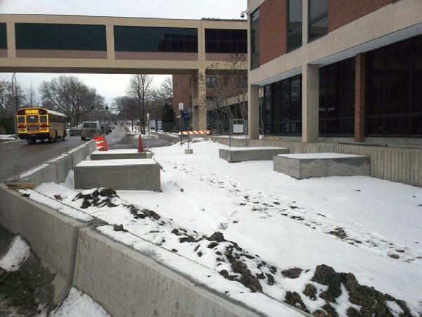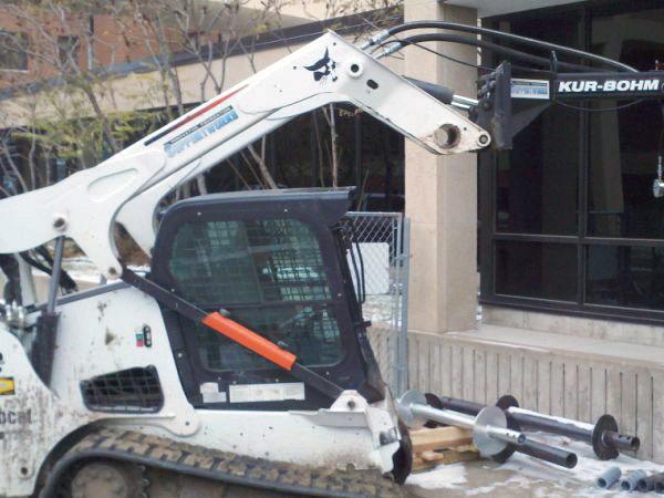 Saint Alexius Hospital planned several building improvements including the placement of large mechanical equipment on the roof of a four-story wing. A Wolffkran 325 SL tower crane was proposed to install the mechanical equipment. The crane would be erected immediately adjacent the hospital with its footprint extending into a busy three lane, one-way street. The tower crane would be supported by four legs with each leg attached to a 7-foot square by 3.5-foot thick concrete pad. A soil boring completed at the proposed tower location identified a soil profile consisting of soft clay fill to a depth of four feet, very loose sand to ten feet, stiff clay and claystone to 35 feet, and dense to very dense sandstone to 50 feet. A deep foundation system was therefore required to temporarily support the tower crane during placement of the mechanical equipment.