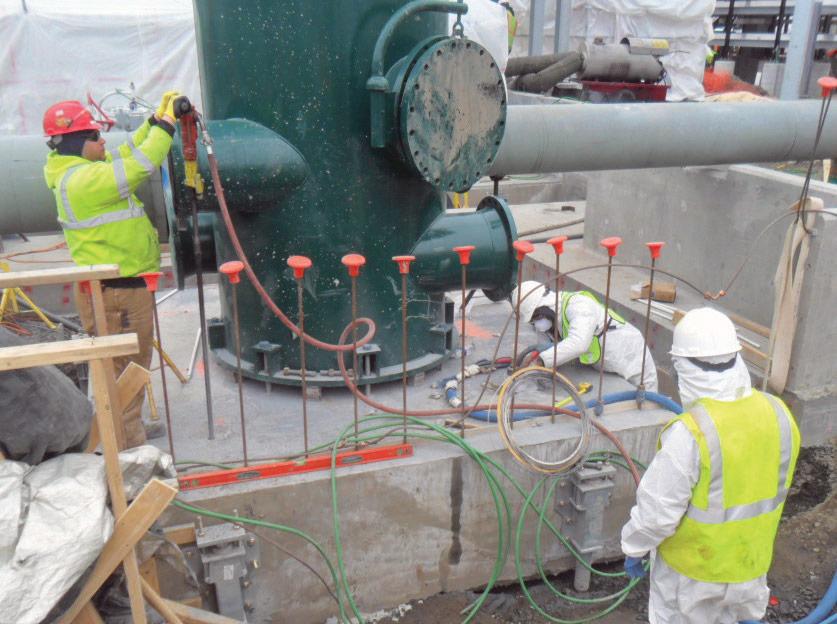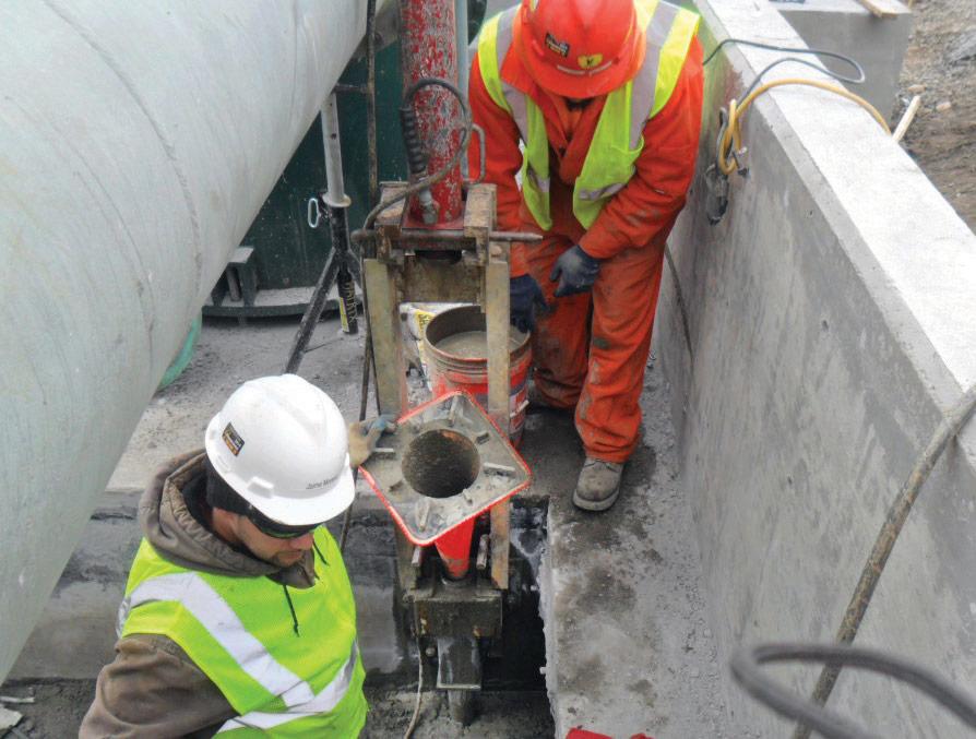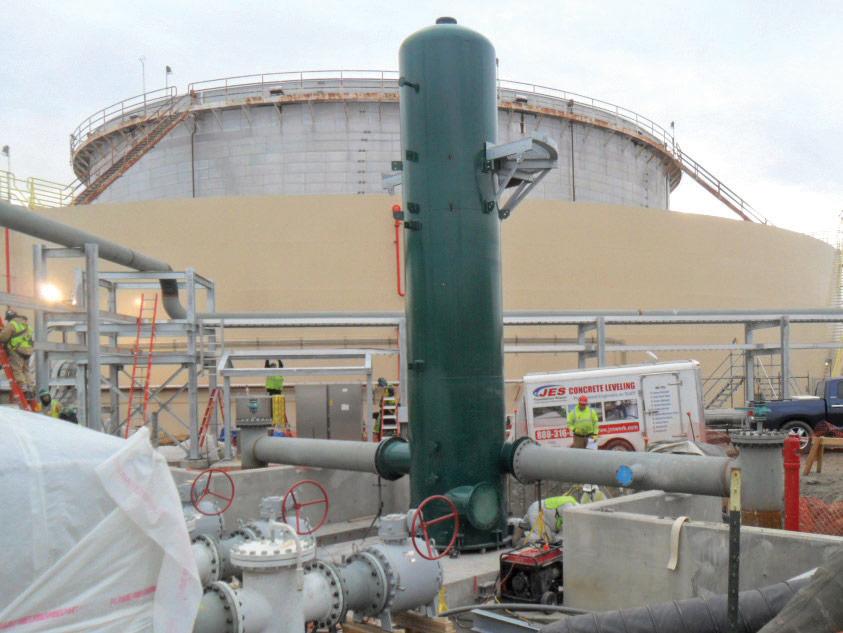 The project site is a former coal fired power station being renovated to receive crude oil delivered by rail from North Dakota. The crude oil will be transferred through a system of piping from the rail cars to barges, and then shipped on the Delaware River to various oil refineries. Two Air Eliminator Tanks associated with Pump Pits A and B were supported on 11’-0” by 12’-4” by 3-foot thick mat foundations (Pads A and B). The two foundations settled differentially when adjacent trench excavations were made. The pads were each originally constructed on four Geopiers (rammed aggregate piers); however, the Geopiers reportedly compressed and shifted laterally toward the excavations when lateral support was lost to the foundation soils. Although the excavations where quickly backfilled, the project engineer was concerned with long-term foundation alignment and stability, and recommended that both pads be underpinned. Pad B would require stabilization only, while Pad A, where settlement had been more significant, would be lifted as much as three to four inches, if possible. A geotechnical study performed across the site identified sandy and gravelly fill containing rubble, debris, and coal fragments over alluvial silts and sands, underlain by bedrock. Several of the borings also described possible fill to depths up to 34 feet. The nearest test borings to Pads A and B encountered approximately 8 to 14 feet of fill and bedrock at about 28 to 38 feet.