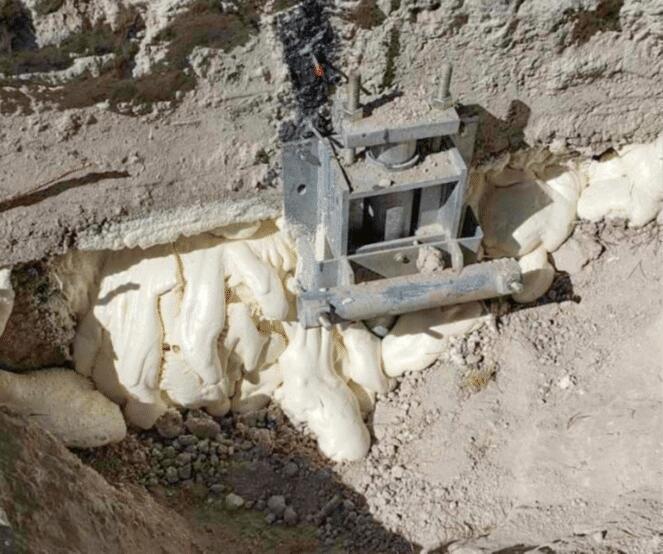 Underpinning bracket with integrated anchor and PolyLevel injection