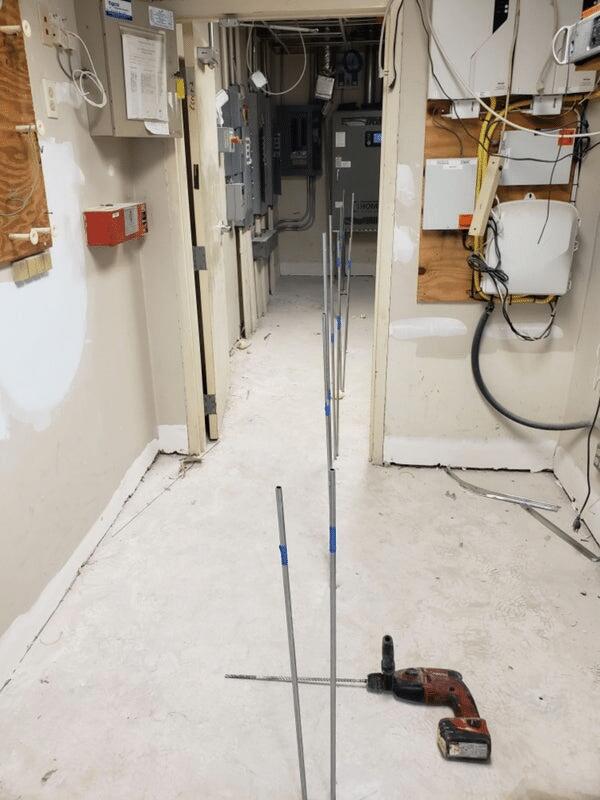 Deep injection tubes for PolyLevel installation at Electrical and IT Rooms