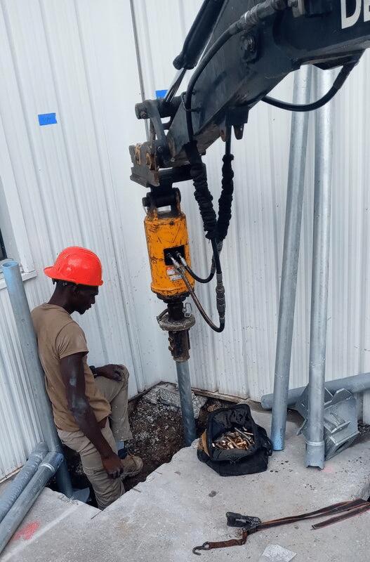 Installing helical slab pier in auction lane area