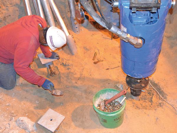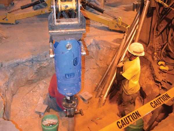 Products Installed: (16) Foundation Supportworks® HP350 Helical Piles, 10"-12"-14"-14"-14" Plate Configuration, Installed Depths from 63 to 75 feet Below Floor Slab Elevation, Design Working Load of 50 kips