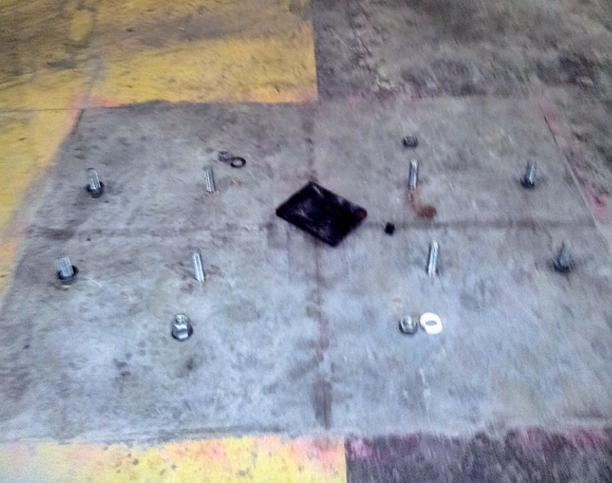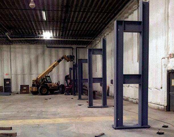 Each of the crane columns would be supported by a pile cap with three helical piles. Helical pile configurations consisted of both the Model 287 (2.875-inch OD by 0.203-inch wall) and the Model 288 (2.875-inch OD by 0.276-inch wall) hollow round shafts with 8”-10” double-helix lead sections to support design working loads of 13.5 and 27 kip s, respectively. The heavy equipment foundations consisted of poured concrete mats supported by four to ten Model 288 helical piles (same plate configuration as described above) with various design working loads up to 27 kips. Standard extensions advanced the piles to depths from 14 to 20 feet below floor slab elevation to bear on or within the unde rlying bedrock. The piles wereadvanced to torque correlated ultimate capacities of at least twice the design working loads (FOS ≥ 2) or until spin-off on competent bedrock occurred. The piles were fitted with standard new construction brackets and cast into the poured concrete foundations. A total of 176 helical piles were installed at the site in 12 working days.
