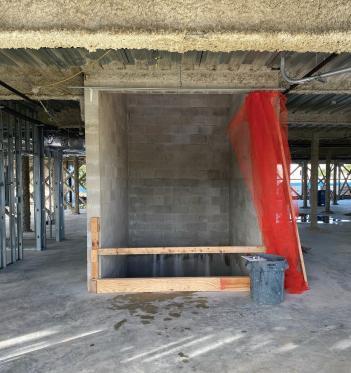 During construction of the Davenport Storage facility, it was observed that two elevator shafts had the concrete floors poured slightly higher than needed for the elevator equipment to fit properly. As a result, the elevator floors would need to be removed and reconstructed at the correct depth. The inside plan dimension of the elevator pits were 7.8 feet wide by 9.7 feet long and could only be accessed through a ground level 8-foot-wide by 9-foot-tall opening. To perform the work, the elevator walls would need to be temporarily underpinned at the bottom of the elevator shafts which would then allow removal of the existing floors, excavation below the elevator walls, and placement of new floor systems at the proper elevation. The underpinning solution would be limited by the narrow access to the elevator shafts and the small footprint of the elevator floors.