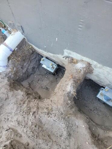 The final design included 36 helical pier underpinning locations along the east wall and portions of the north and south walls at the east end. The helical piers had maximum service compression loads of 25 kips and a factor of safety of two on the service load for a maximum ultimate capacity of 50 kips. The Model HP288 (2.875-inch OD by 0.276-inch wall) hollow round shaft helical pier with a 10”-12” helix plate configuration with V-style leading edges and standard retrofit brackets were specified. The helical piers were installed to an average termination depth of 35 feet after achieving a torque-correlated ultimate capacity of at least two times the service load. A structural lift was performed at the pier locations with a maximum lift of 9 inches. After the structural lift was performed, 3,057 lb of PolyLevel® PL400 polyurethane foam was injected under the slabs. The helical piers and polyurethane foam were installed over a period of about 12 days.