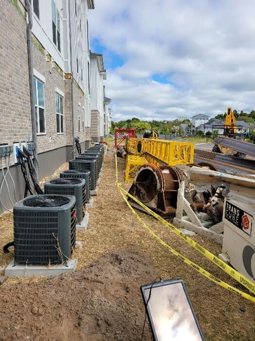 The Aventon Lana complex consists of 396 housing units in several buildings across a 22-acre site in Clearwater Florida. Building No. 8 experienced excessive settlement at the east end of the structure. This building is an approximate 10,000 square foot, three story structure with a post-tensioned slab foundation. An elevation monitoring program was initiated in January 2023 at the east half of the structure with slab elevation readings taken over an approximate 6-month period. The slab monitoring program showed that settlement was continuing. Two geotechnical soil borings were advanced near the east wall of the structure in July 2023 to document the soil bearing strengths near the building. The borings showed highly variable soils conditions with zones of very loose sand and organics intermixed in more competent bearing materials. Based on the elevation monitoring and soil boring results, it was determined that the settlement would continue unless a remedial method was initiated. The most cost-effective option was to underpin the east half of the building and possibly lift it back to its original elevation. After lifting, any voids under the slab would need to be filled to provide sufficient slab support. Existing AC units and underground utilities at the east wall would make it difficult for underpinning operations.