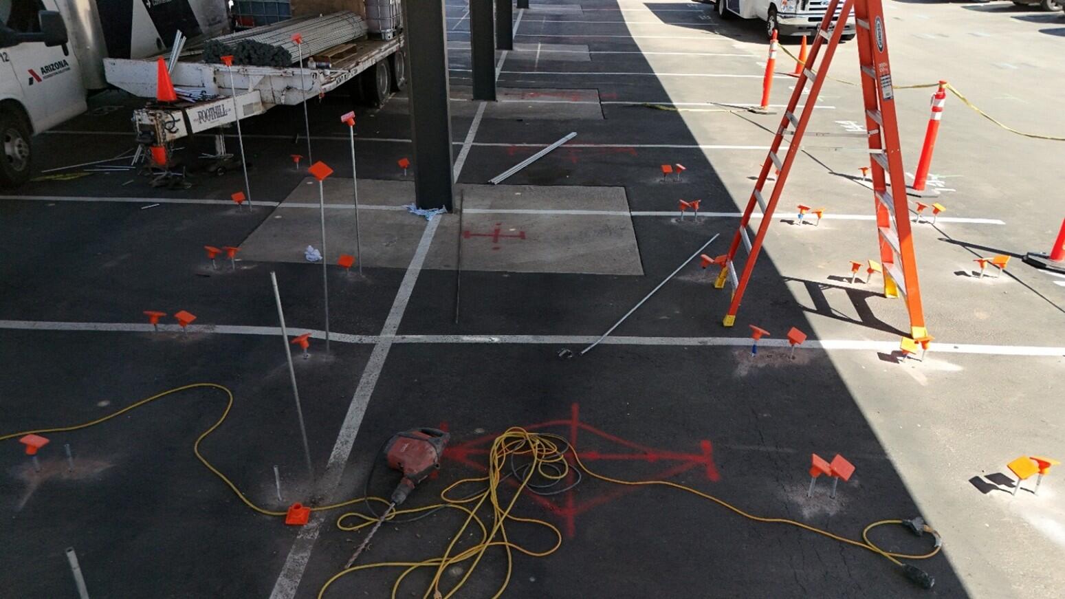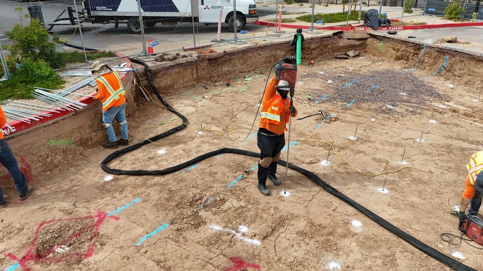 Located in Phoenix Arizona, Aviara Flats is a 372-unit apartment complex constructed in 2022 and covers an approximate 18.5-acre area. By 2025, the southwest portion of the complex exhibited significant pavement distress at driveways and parking lots. The settlement resulted in cracking in the pavement and issues with surface water drainage during rain events. The parking areas have solar panel canopies with electrical vaults and buried electrical conduits throughout. There was concern that future settlement of the pavement could compromise the buried electric utilities. Based on the results of a GPR survey, six areas were selected for remedial treatment to improve the pavement subgrade and deeper soils to limit future settlement. New asphalt pavement would be placed after the soil treatment. A geotechnical investigation performed in 2020 showed about two feet of sandy clay fill underlain by medium stiff to stiff clay to depths of 15 feet or so. A remedial method was required that could improve the pavement subgrade and deeper soil without damaging the existing underground utilities. An aggressive timeline required that the work needed to be completed in one month.