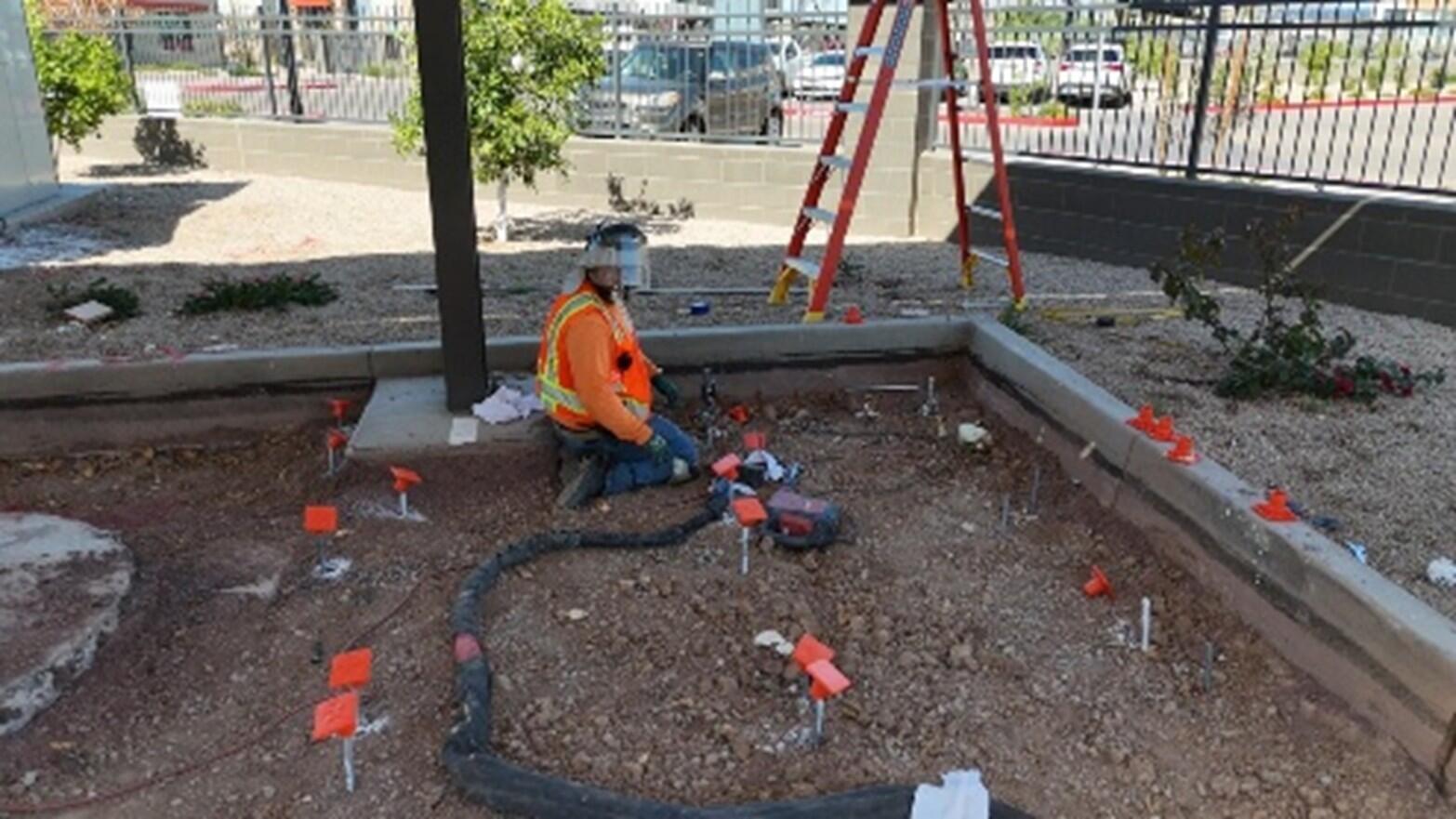 Installing PolyLevel at electrical vaults under solar panel area