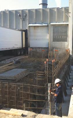 A 2,800-square-foot addition was planned to extend the warehouse at four loading dock doors. The geotechnical investigation performed for the proposed addition included the advancement of two soil borings to a maximum depth of 85 feet. The subsurface profile generally consisted of uncontrolled fill with asphalt and brick rubble to a depth of 12 feet, medium stiff to stiff silty clay to a depth of 30 feet, and intermixed layers of stiff to very stiff clay and medium dense to dense silty sand to the bottoms of the borings. Groundwater was encountered at a depth of 68.5 feet at the time of the exploration.