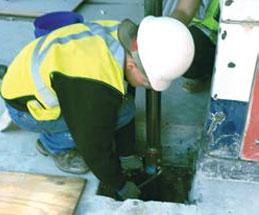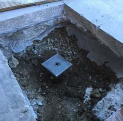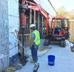 An abandoned gas station built in the 1950s was being remodeled into a bakery. The general contractor found the original building construction did not include a lintel over the station’s garage door openings. The project designers therefore proposed to install a steel lintel, spanning roughly 20 feet between two new columns, to support a large wall opening that would replace the existing garage doors. New column spread footings would remove large sections of the floor slab and would be difficult to place adjacent to the existing walls. A deep foundation element was therefore proposed to support each new column. Access to the proposed column locations was limited and required smaller pile installation equipment.