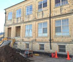 Wainwright Hall at the Fort Riley Military Reservation in north central Kansas was constructed in 1889. A 50-foot-long by 10-foot-wide porch in the southeast corner of the south wing was later enclosed using the same native cut limestone block as the original structure with the exterior walls and columns supported by a continuous concrete footing. This remodeled area settled away from the main structure.