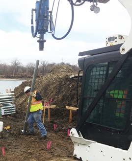 The proposed outfall sewer sections would be located between their corresponding test borings and the Missouri River; i.e., downslope from and closer to the river than the identified soil profiles. Therefore, variability in soil conditions was anticipated. A Model 175 (1.75-inch solid square shaft) helical pile test probe with an 8”-10” helix plate configuration was advanced at three locations to depths from 55 to 77 feet to back-calculate soil strengths from the measured installation torque. The helical test probes identified highly variable soil strengths with the upper 40 feet of the profile generally weaker than what was identified at the soil boring locations.