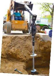 Helical piles can be installed quickly with relatively small equipment, making them the obvious choice to provide the deep foundation support for the fuel tank in its new location. A 26 kip design working load was specified for each helical pile. The pile configuration consisted of Model 288 (2.875-inch OD by 0.276-inch wall) hollow round shaft with an 8”-10”-12” triple-helix lead section. The leading helix plate was fabricated to have a V-style cut on its leading edge to help the pile penetrate the dense fill and bear on or within the underlying bedrock. Standard extensions advanced the piles to depths from 35 to 47 feet to achieve torque-correlated ultimate capacities of at least twice the design working load (FOS ≥ 2). The piles were fitted with standard new construction brackets to be cast within two concrete tank supports. Despite tight working conditions with low headroom, seven helical piles were installed within two days.