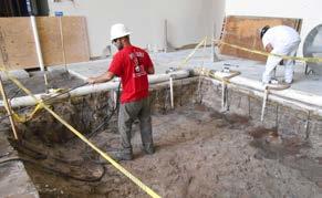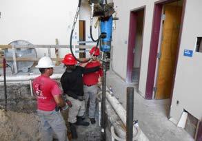 The soil stabilization process included thirty-one (31) injection points spaced around the perimeter of the proposed elevator roughly two to three feet apart. The single-part resin was installed through solid, thin metal tubes (injection pipes) and injected from two feet below the bottom of the excavation to the soil surface in 12-inch lifts. To accommodate varying bottomof-pit elevations, the resin was injected at starting depths from 9, 10, or 11 feet. With both the perimeter soils and nearby foundation stabilized, the elevator pit was excavated and the renovations continued ahead of schedule and under budget.