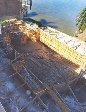 A swimming pool was planned behind a bayside home that was still under construction. The cinderblock and wood framework of the new home was supported by driven concrete piles; however, deep foundations were not installed for the proposed pool.