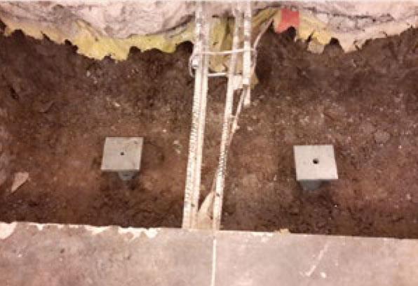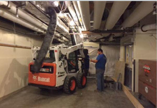 The helical piles were installed with a high-flow skid steer, which could be driven through standard double doors and over temporary bridging that spanned excavations within the tight working conditions. Scrubber attachments were used to mitigate exhaust fumes within the building. The helical pile installation was completed in just two days.