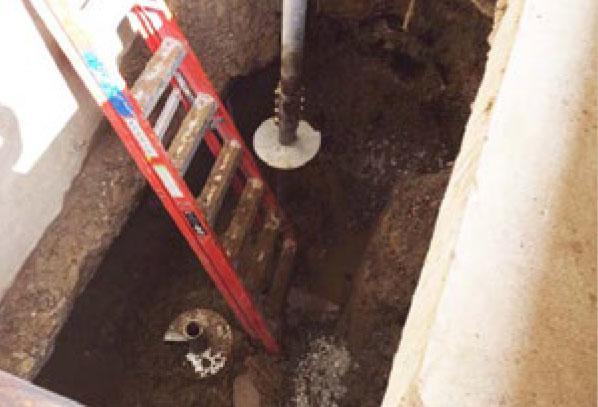 Products Installed: (14) Foundation Supportworks® HP350 Helical Piles, 8"-10"-12" Lead Section, Design Working Loads up to 50 kips (Compression)