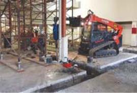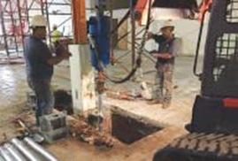 Products Installed: (4) Supportworks® HP350 Helical Piers with an 8"-10"- 12" Lead Section; Installed Depths from 77 to 84 feet; Design Working Compression Load of 51.5 kips