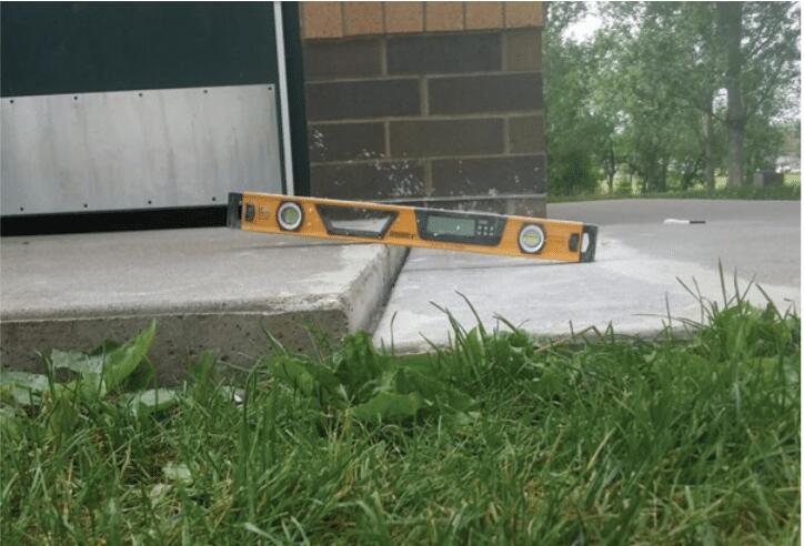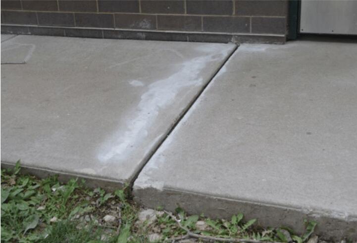 The sidewalk surrounding the public restroom building at Northwest Park in Davenport, Iowa experienced differential settlement, evident by faulted slab sections at some of the joints. This vertical displacement was as much as three inches, creating trip hazards and potential liability claims. The Parks and Recreation Department placed a concrete “wedge” at the worst location to minimize risk, but decided to seek a more suitable, long-term solution. Removal and replacement of the concrete was not considered since it would involve constructing barriers and shutting off access to the building for several days to a week.